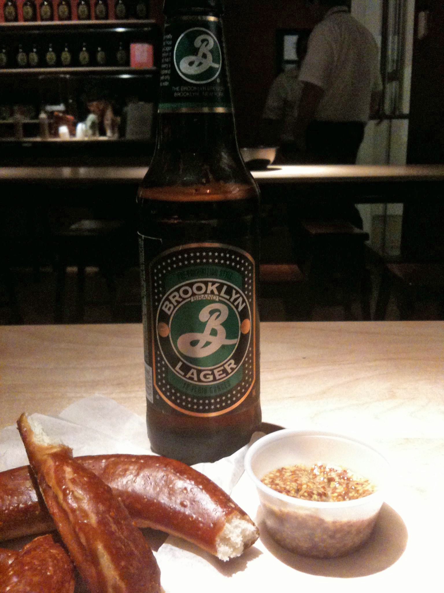 Although we missed Brooklyn Brewery’s ’05 Black Chocolate Stout yesterday, there was plenty of beer and ambiance to welcome weary time-travelers relaxing in the beer hall at the finale of New-York Historical Society’s exhibition Beer Here: Brewing New York’s History –a friendly (and informative) barkeep, giant pretzels, and Brooklyn’s finest.