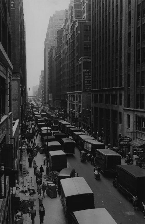As recently as the 1970s, carts were still being shuttled through the narrow streets, but we know how that story ended. Today, no one even looks up at the entrances, set-backs, lobbies, or embellishments of these once grand hubs where models, marketers, Mad Men, laborers, seamstresses, teamsters, pattern makers, the designers co-mingled.