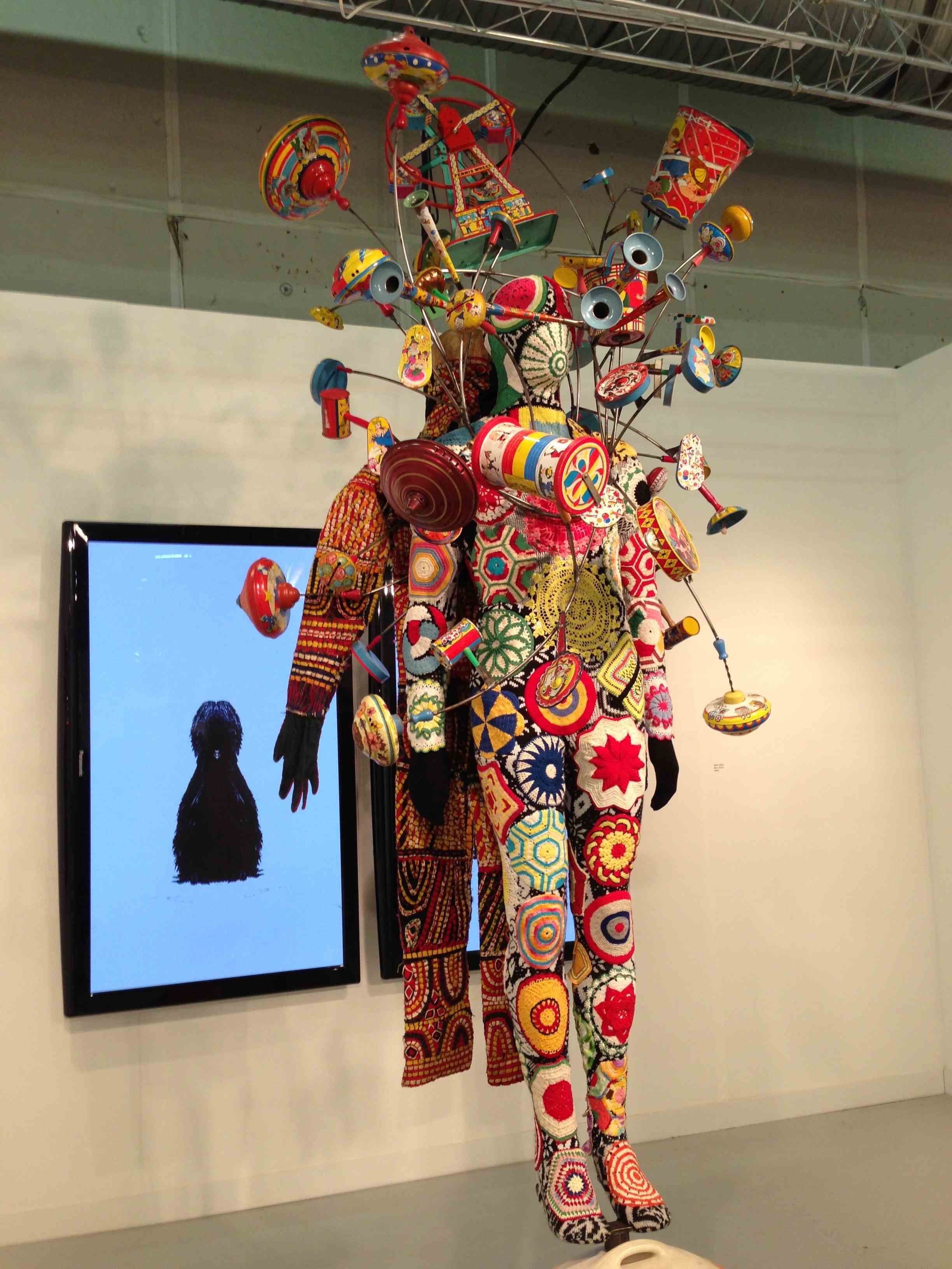 Nick Cave soundsuit (2012) and video featured at Jack Shaniman Gallery booth at the Armory Show’s Contemporary pier