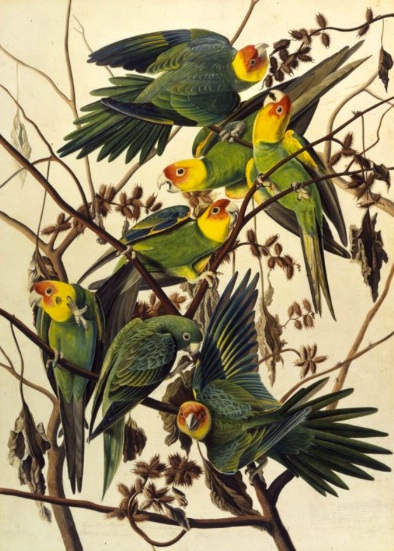 JJ Audubon painted them before they went extinct: Carolina Parakeet: Study for Havell, pl. 26, (c. 1825). Source: NYHS