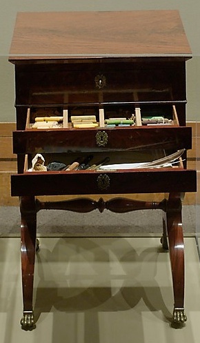 The curators display a rare 1810-20 cabinet that shows how pastel artists arranged their medium, color by color, in cabinet drawers made specifically to hold the chalk and pastel crayons. The artist would draw within arm’s length of the cabinet, reaching for whatever subtle shade he or she felt appropriate to create the lifelike illusions.