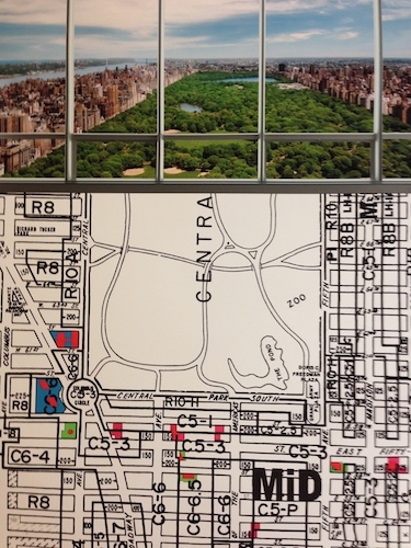A photo of the future view from an apartment in One57, with the Midtown zoning map. Source: Skyscraper Museum