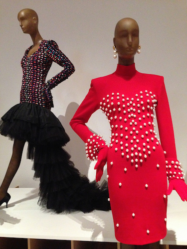The show features videos of Patrick sporting his familiar denim overalls, a joyful designer with a lot of love in his heart for his models, friends, and colleagues. It’s fitting that the museum has posted on its web the things that he loved best. Click here to see Patrick’s Love List and a photo of Bette Davis wearing one of his looks.