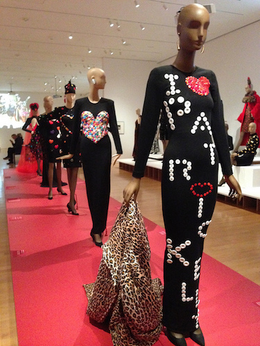 Supermodels having fun, crazy colorful buttons, zingy color, and tongue-in-cheek tributes to fashion’s greats – it’s all on display at the Philadelphia Museum of Art’s tribute to one of our all-time favorite fashion designers in the exhibition Patrick Kelly: Runway of Love, on through December 7.