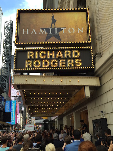 Lottery Published May 23, 2016 at 375 × 500 in See Hamilton No Waiting Lin’s Ham 4 Ham reading outside the theater during the preview lottery