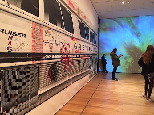 1-19 The Sixties at MoMA Published March 18, 2017 at 500 × 375 in Sixties Bus and Jag Pulling Out of MoMA 1967 bus by Mason Williams and Max Yavno with designer autographs from MoMA’s 1968 Word and Image show, with Joshua Light Snow’s 1967 Liquid Loops
