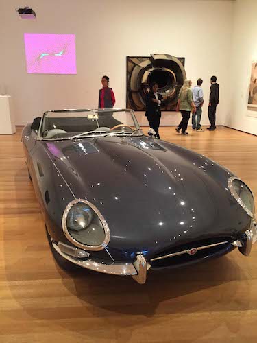 1-2 The Sixties at MoMA Published March 18, 2017 at 375 × 500 in Sixties Bus and Jag Pulling Out of MoMA Jaguar’s aerodynamic 1961 E-Type Roadster sharing space with a Lee Bonticou work