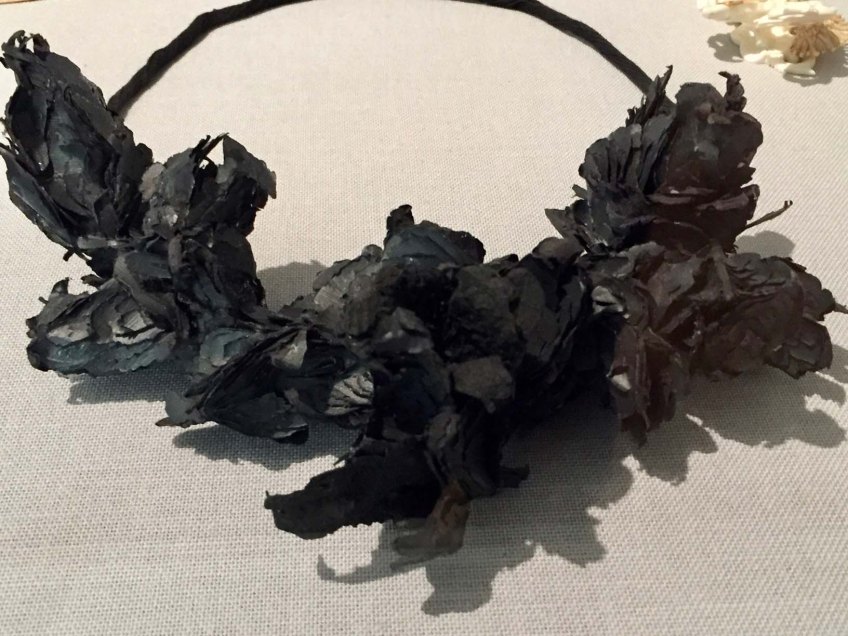 1-14 Jewelry of Ideas Published May 19, 2018 at 1632 × 1224 in When Jewelry Has Its Own Idea Attai Chen’s paper, paint and coal necklace from Nature section of the show