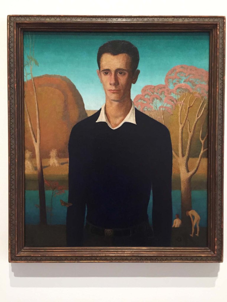 1-7 Grant Wood at The Whitney Published May 29, 2018 at 1224 × 1632 in Grant Wood Puts Sophisticate Spin on American Myths 1930 Arnold Comes of Age (Portrait of Arnold Pyle), Grant’s studio assistant on his 21st birthday. Collection: Sheldon Museum of Art