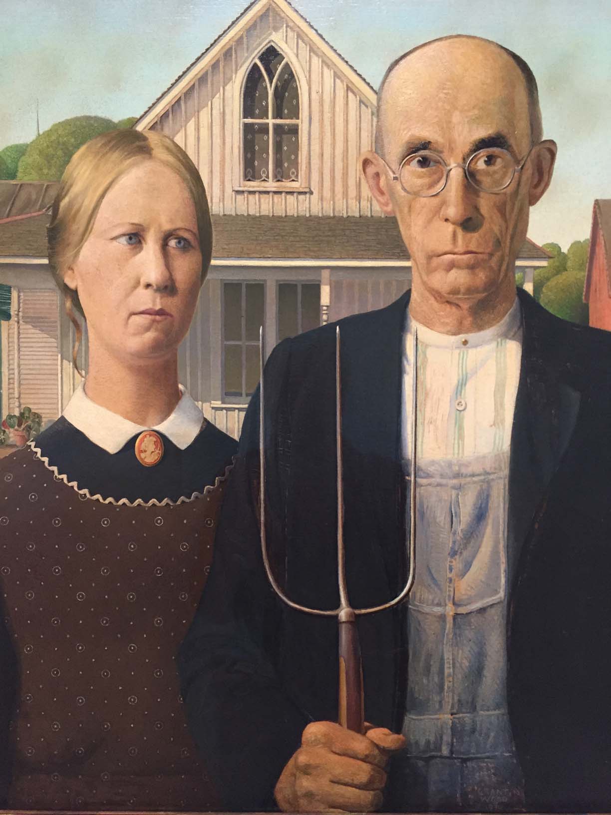 1-8 Grant Wood at The Whitney Published May 29, 2018 at 1224 × 1632 in Grant Wood Puts Sophisticate Spin on American Myths 1930 “American Gothic” painting, which Grant Wood modeled on his sister and dentist – an “invented” couple. Collection: Art Institute