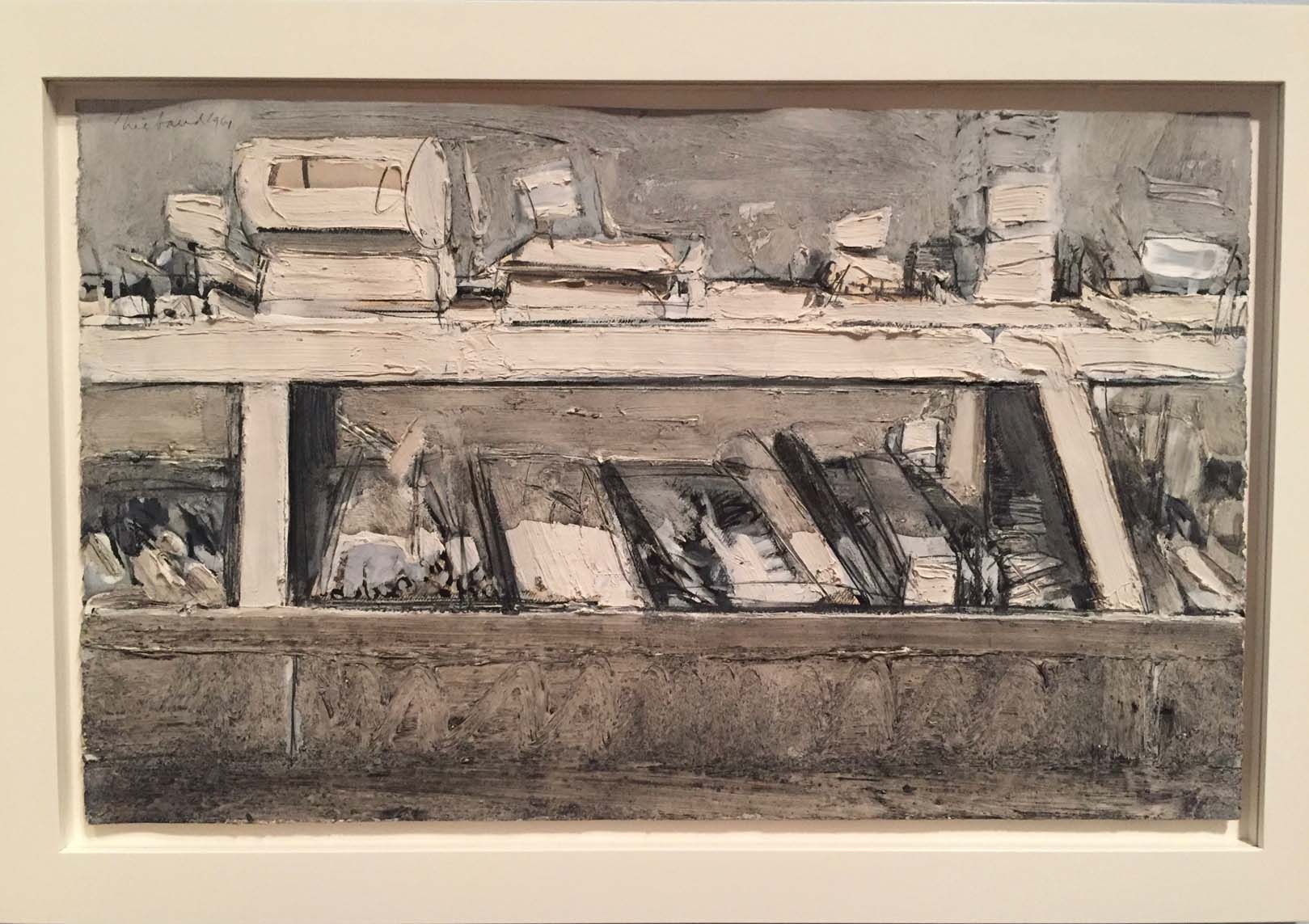 1-1 Wayne Thiebaud at The Morgan Published September 22, 2018 at 1619 × 1143 in How Cakes and Pies Got into the Museum Delicatessen Counter, an AE-inspired 1961 mixed media drawing