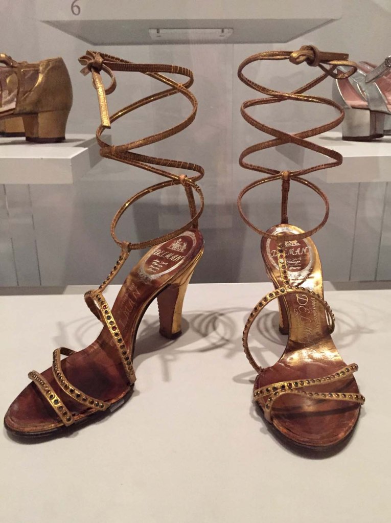 1-17 Walk This Way at NYHS Published October 2, 2018 at 1151 × 1540 in Weitzman’s Historic Shoes at NYHS Delman 1948 leather and rhinestone evening sandals