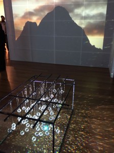 One of the most magical experiences is the Joan Jonas installation with twinkling crystals, sparkling facets, and mystical mountains – a poetic experience reflecting her lifetime of exploration, collaboration, media experimentation, and life work.