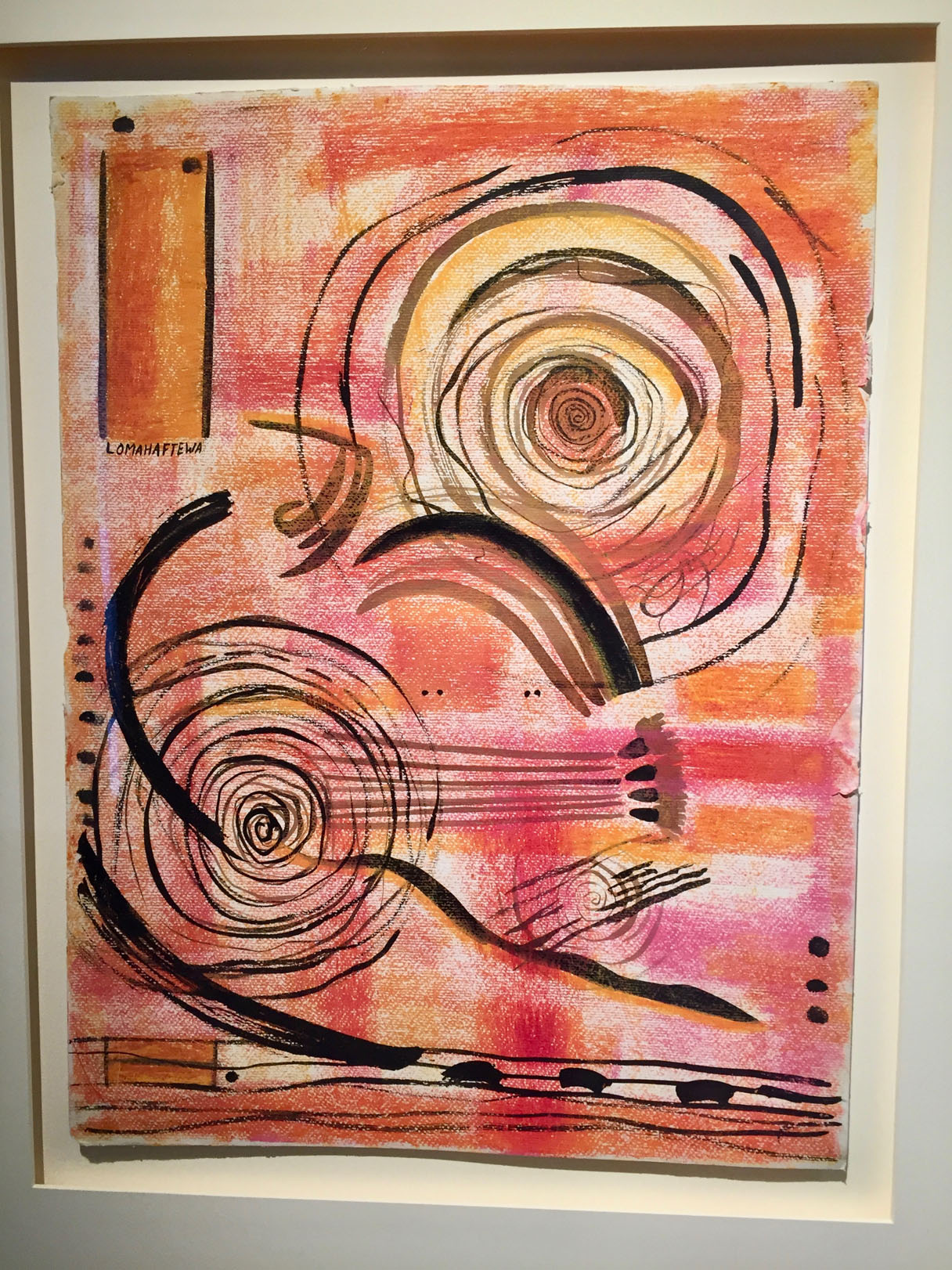 1-1 Sixties Native American Abstraction Published July 7, 2019 at 1216 × 1622 in Bigger Field of Vision in Sixties Color Painting Gesture and expression: 1965 pastel by Hopi/Choctaw artist Linda Lomahaftewa