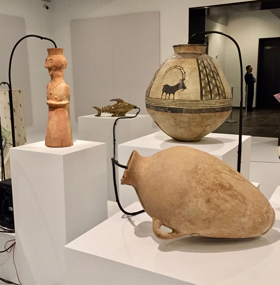 1-4 Vessel Orchestra at Met Breuer Published July 30, 2019 at 1174 × 1192 in Beer Makes Pots Sing at Met Breuer Vessels wired to amplify their ambient tone, including a female effigy (7th – 6th c. B.C.), Beatrice Wood’s fish, an Iranian storage jar (3800 – 3700 B.C.), and a Canaanite jar (1500 – 1400 B.C.).