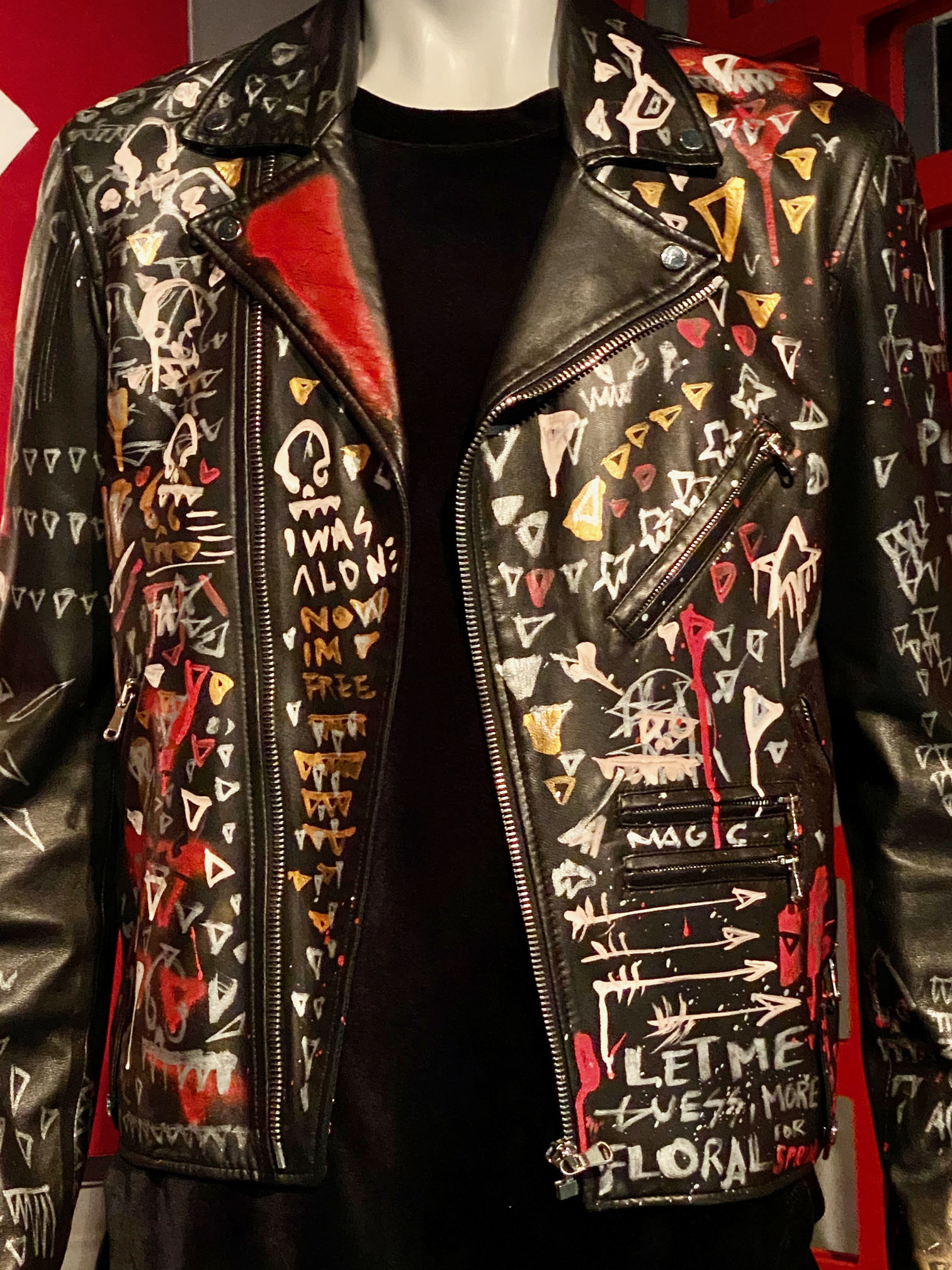 Power to resist – 2016 leather jacket by Kerby Jean-Raymond for Pyer Moss covered in messages about racism in the fashion industry