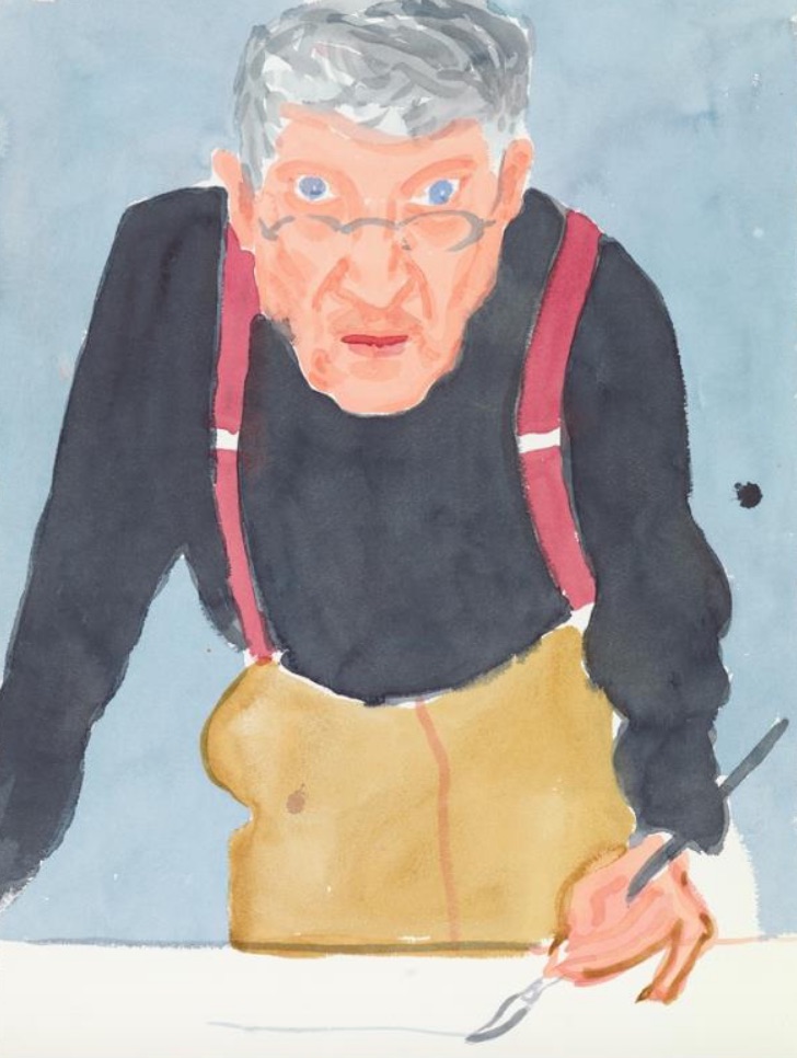 Hockney_Morgan_Web Published October 4, 2020 at 728 × 966 in NYC Museum Virtual Events on Hockney, Pelton, and Design David Hockney, Self Portrait with Red Braces, 2003. © David Hockney. Photography by Richard Schmidt. Courtesy: The Morgan