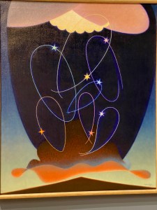 You’ll experience six decades of abstract paintings whose shapes fly, hover, and float above desert mountains and in deep space – another dimension that feels light, otherworldly, and pure. Take a look at our Flickr album.