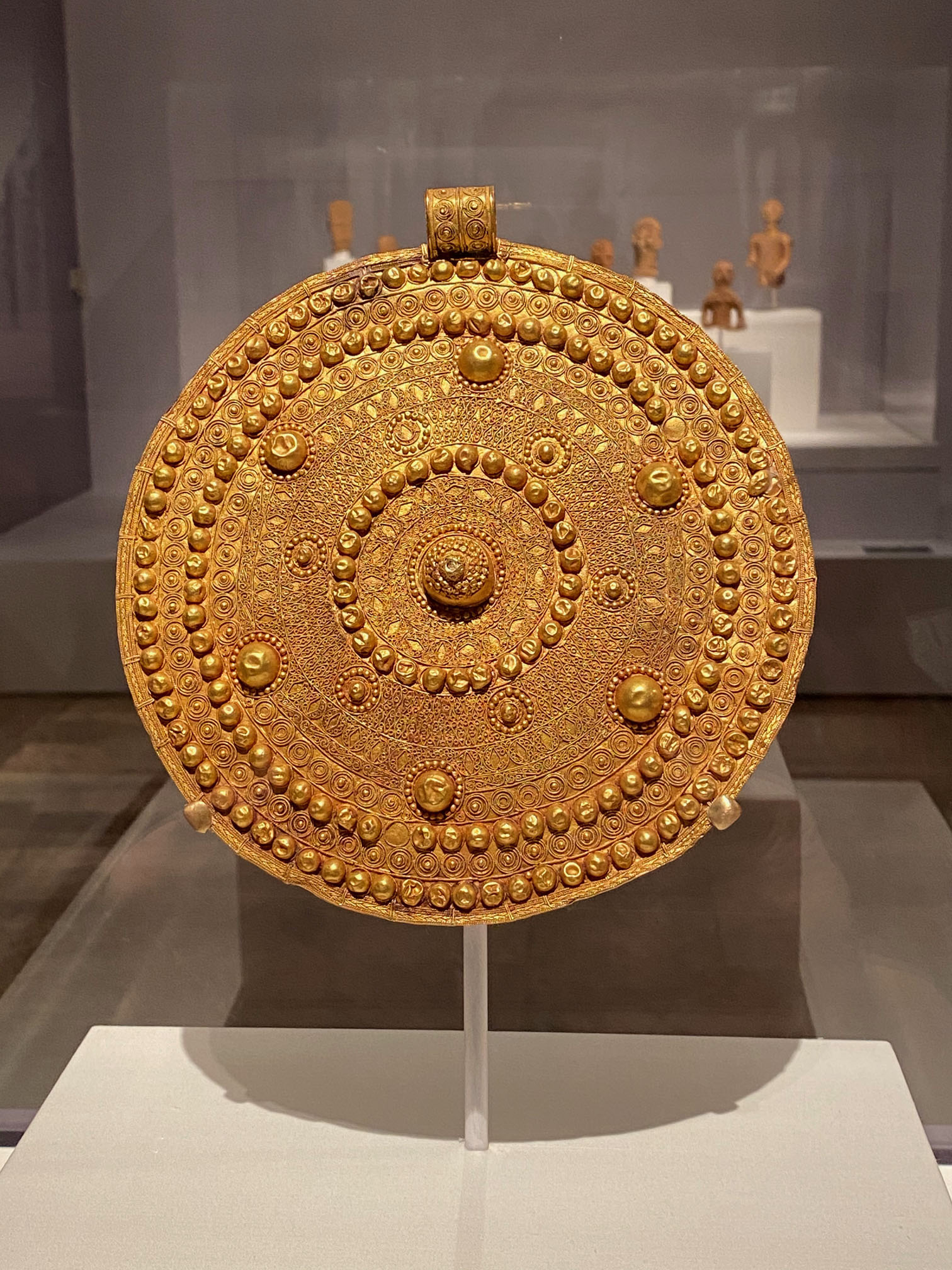 1-12 Sahel Art of the Sahara Published October 12, 2020 at 1512 × 2016 in Travel the Sahara Superhighway at The Met Large 12th – 13th c. gold pectoral, found at a burial in northwest Senegal, with elaborate filigree. Courtesy: IFAN, Senegal