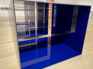 In each gallery, visitors are invited to circumnavigate and explore the monumental works. One orange box seems to glow; another has a transparent surface that lets you peer inside. An enticing series of blue and silver boxes seem to let you peek through to an entirely different dimension.