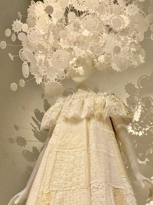 The exhibition finale is fitting – a small chapel where visitors can meditate on “slow fashion,” sustainability, and a return to basics before they exit to the gift shop.  It features a suspended (or ascending) figure clad in one of Viktor & Rolf’s sweet dresses made of leftover off-white fabric swatches.