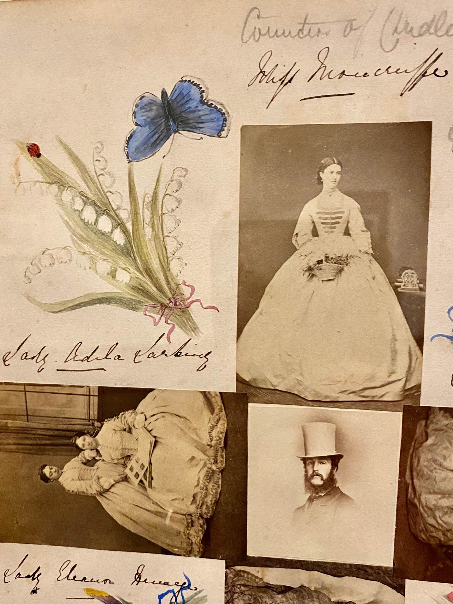 Meet Lady Mary Georgina Filmer, a London society gal who mastered the art of photocollage as early as the 1860s. A page from one of her albums shows how she merged topsy-turvey photo images, botanical watercolors, and text to tell stories her own way – a true stay-at-home pioneer!