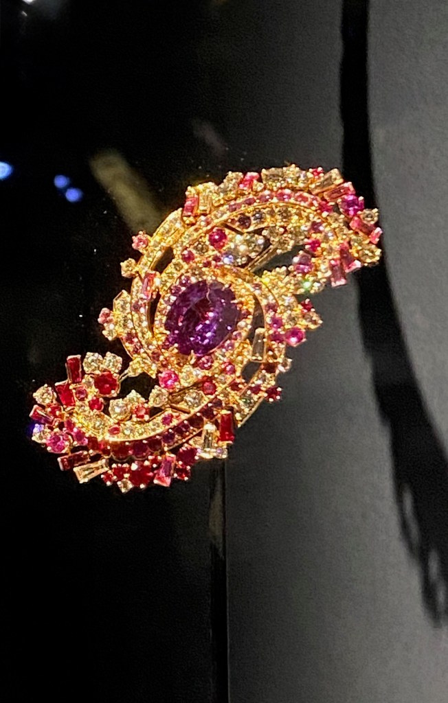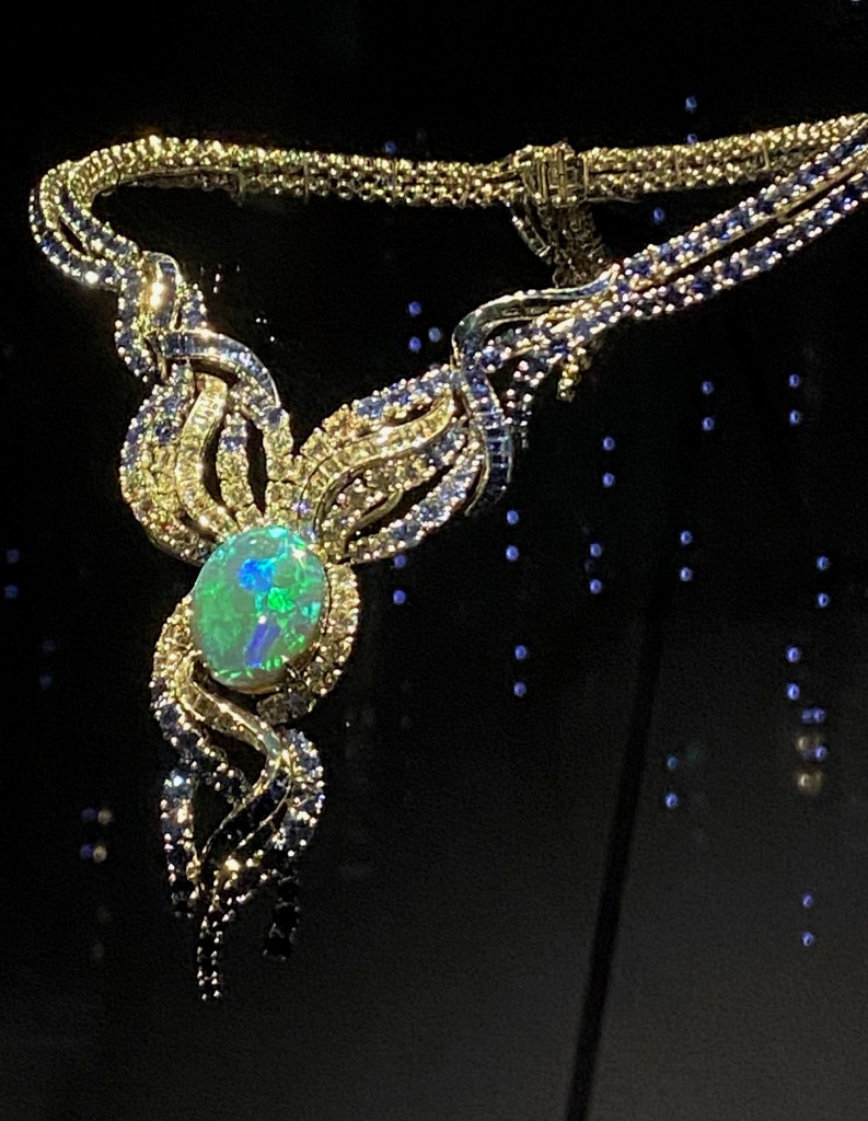 There’s plenty of dazzling eye candy tucked away in a corner of the Gems and Mineral Hall inside the American Museum of Natural History. Look at sparkly diamonds, rubies, emeralds, turquoise, and every other polished gem you can think of as you contemplate the mysteries of stars, planets, and distant galaxies in Cosmic Splendor: Jewelry from the Collections of Van Cleef & Arpels, on view through January 4, 2026.