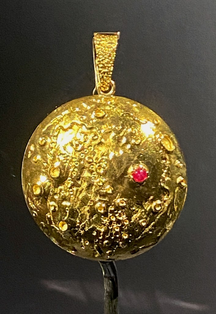 The Moon: 1969 yellow gold Moon pendant to commemorate the first men to land there; ruby marks the spot. Courtesy: Van Cleef & Arpels.