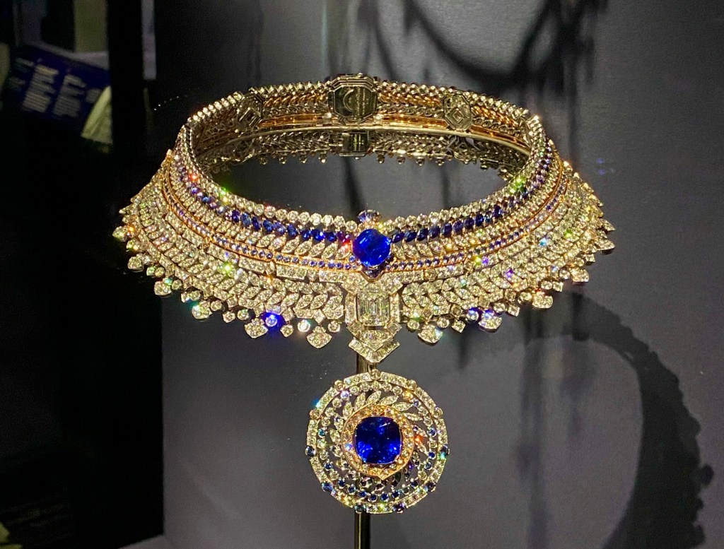 Inspired by Jules Verne’s 1865 sci-fi space travel story – the 2010 gold, sapphire, garnet, and diamond Tampa Necklace. From Van Cleef’s Extraordinary Journeys high jewelry collection. Courtesy: private collection.