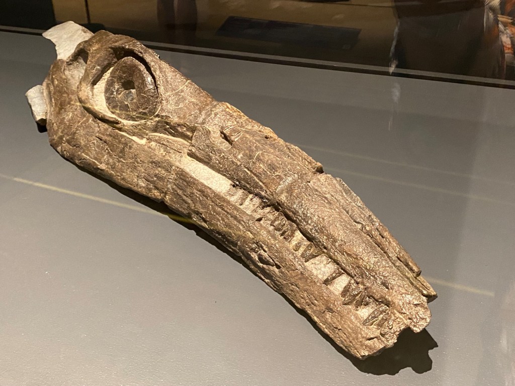 For the last ten years, palentologists Randy Irmis and Neal Patrick Kelly have been working in the same area. The exhibition includes their recent ichthyosaur discoveries, including baby Shonisaurus bones, teeth, and a snount containing tooth sockets – evidence that the animal was likely a formidable predator.