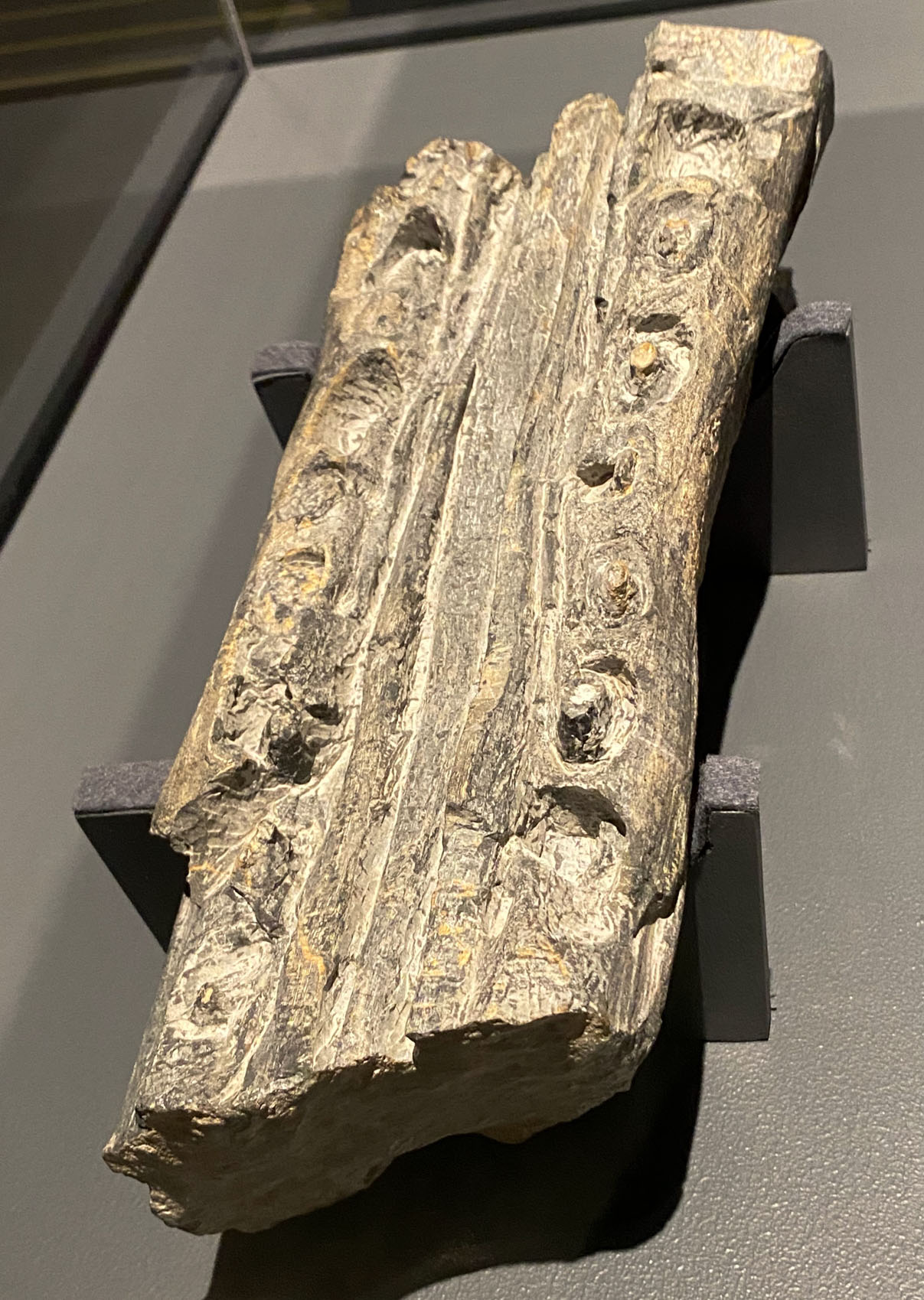 For the last ten years, palentologists Randy Irmis and Neal Patrick Kelly have been working in the same area. The exhibition includes their recent ichthyosaur discoveries, including baby Shonisaurus bones, teeth, and a snount containing tooth sockets – evidence that the animal was likely a formidable predator.