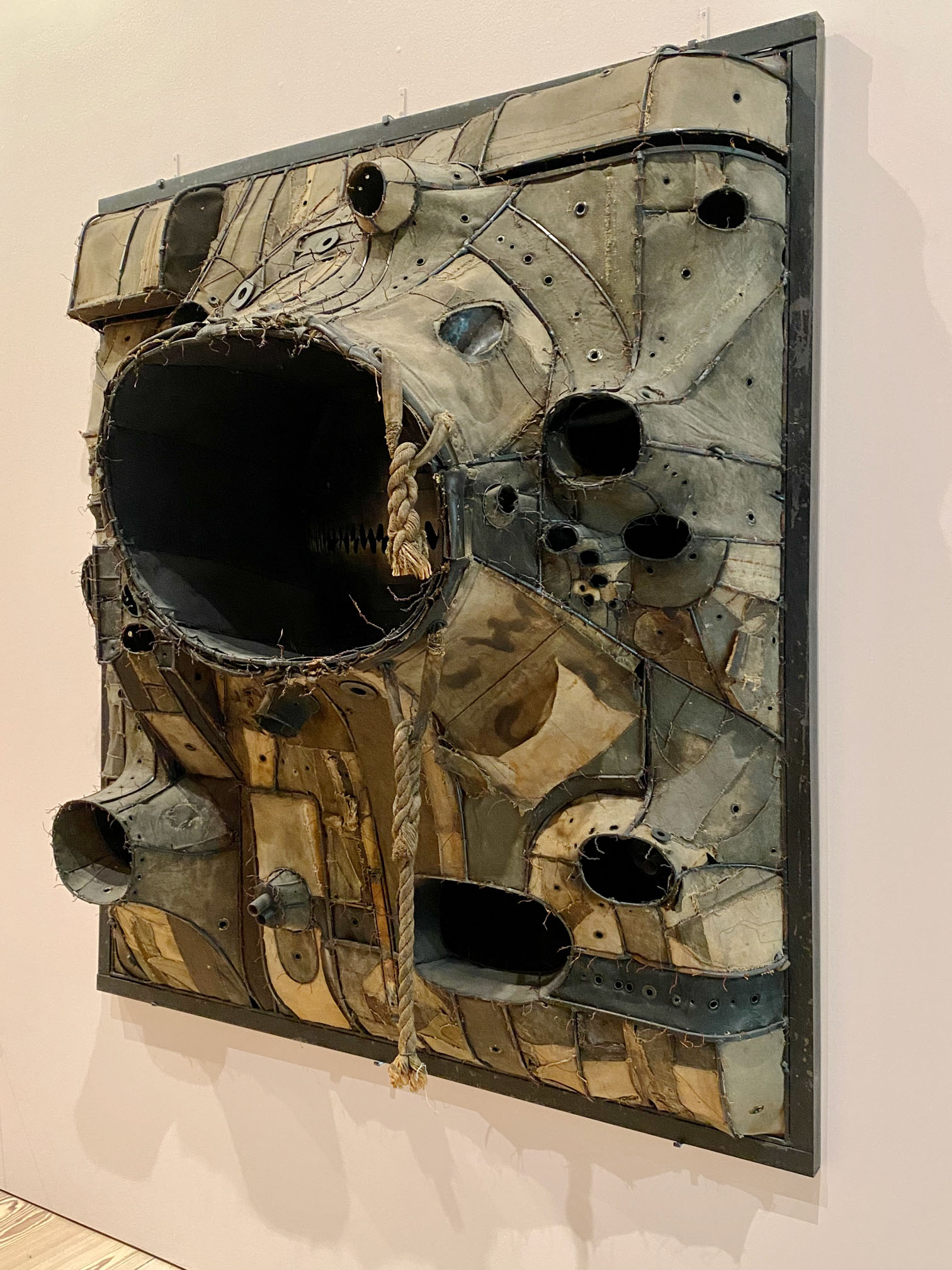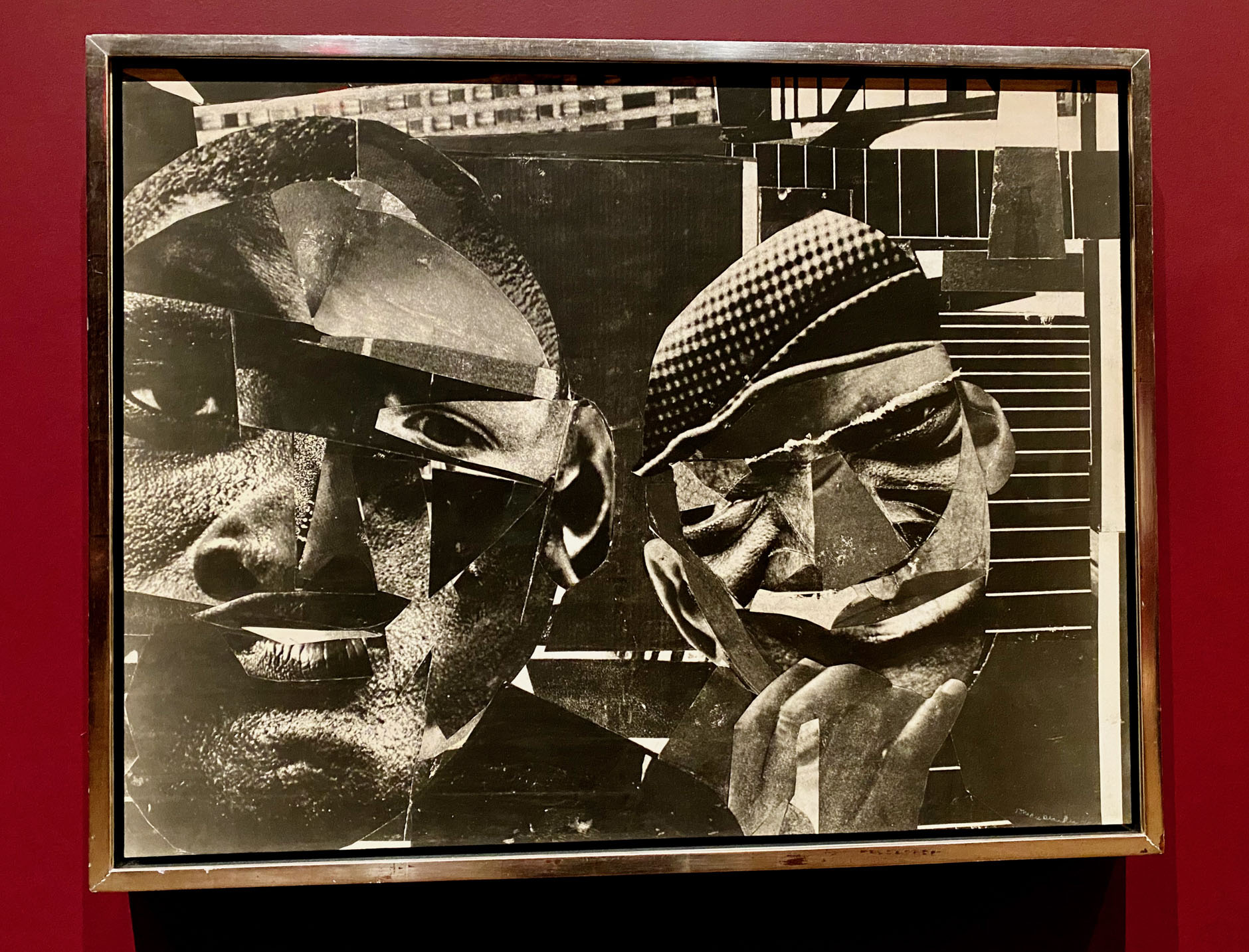 The far end of the exhibition presents works that take a stand to push for change in the world. Jasper Johns and Fritz Scholder let their paint do the talking. But others use a dada tactic to get the point across – hard-edge collages and assemblages.