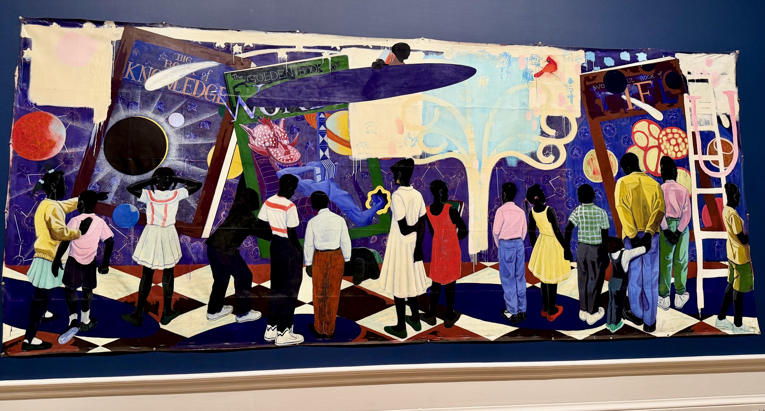 Other modern-life paintings bring viewers unexpectedly into a world of gardens among Chicago public-housing complexes and a magical world of books awaiting eager young readers.