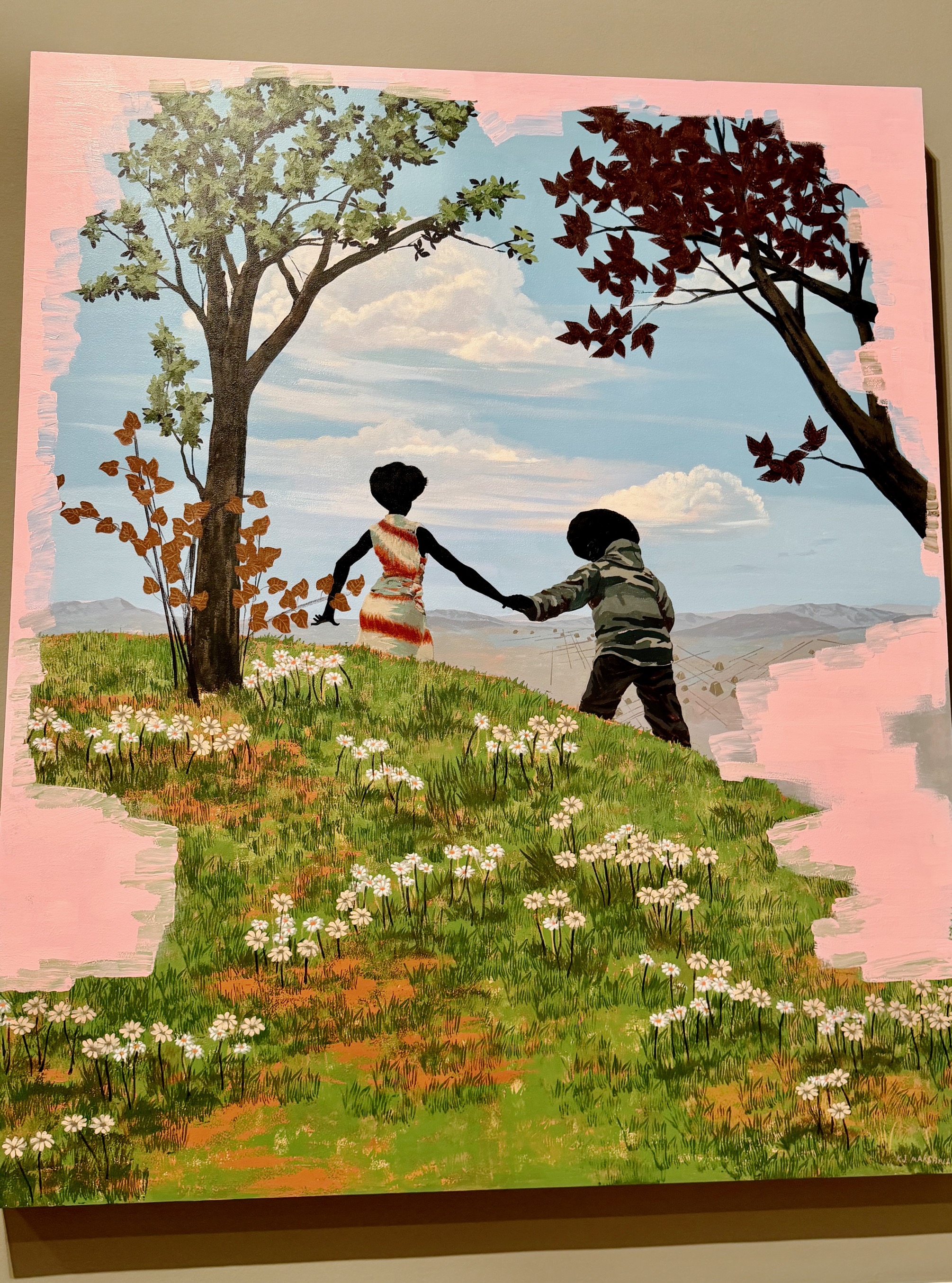 The exhibition begins with a gallery depcting self-confident artistic portraits, scenes from the academic art studio, and kids joyfully visiting a museum for the first time – a recollection of Marshall’s own exhilarating inauguration to a new world.