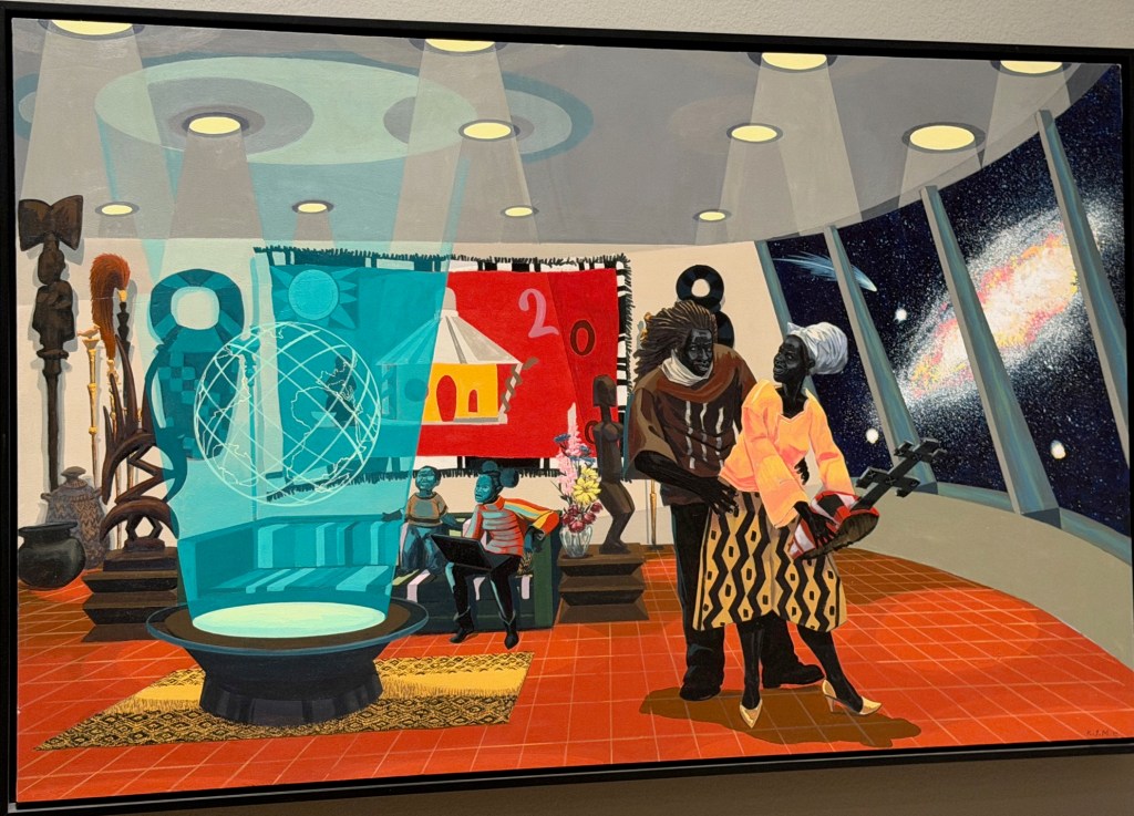 Past, present, future, brilliant color, intriguing composition, successful Black protagonists – everything about the exhibition creates an indelible adjustment to what you thought you knew about daily Black life, lost history, and potential futures.