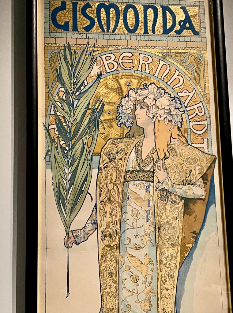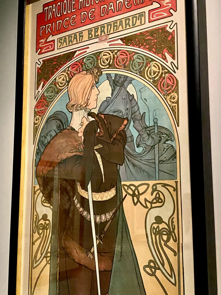 Close-up of Mucha’s life-size 1899 poster of Sarah Bernhardt starring in Hamlet, with Celtic motifs. Courtesy: Mucha Foundation.