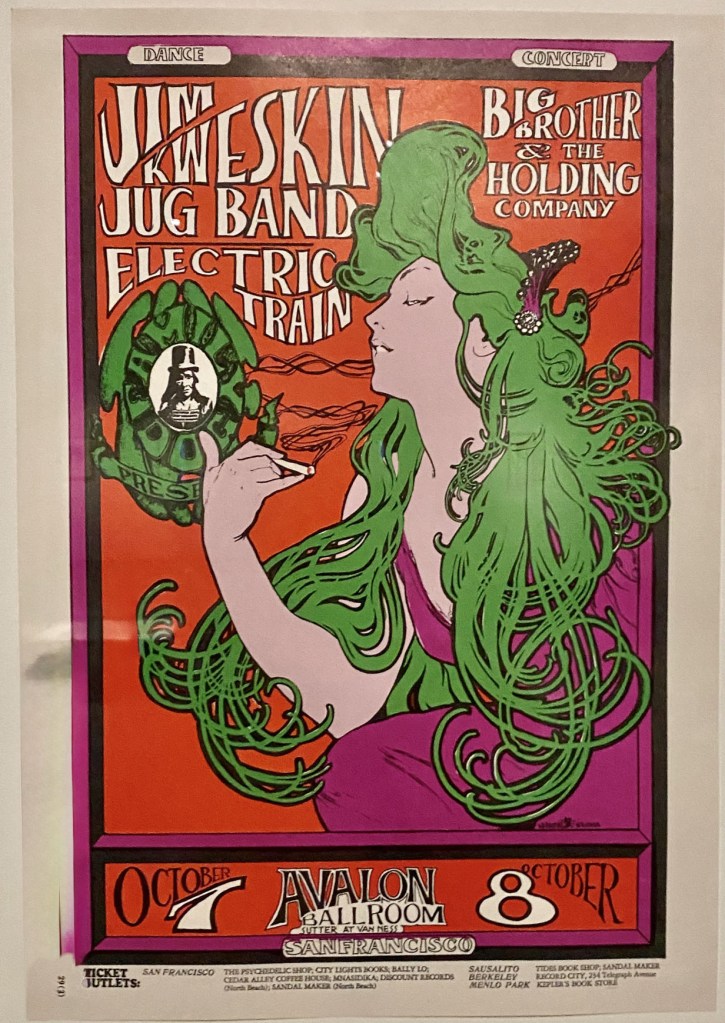 1966 poster by Stanley Mouse and Alton Kelley for a San Francisco concert headlining the Jim Kweskin Jug Band and Big Brother and the Holding Company.