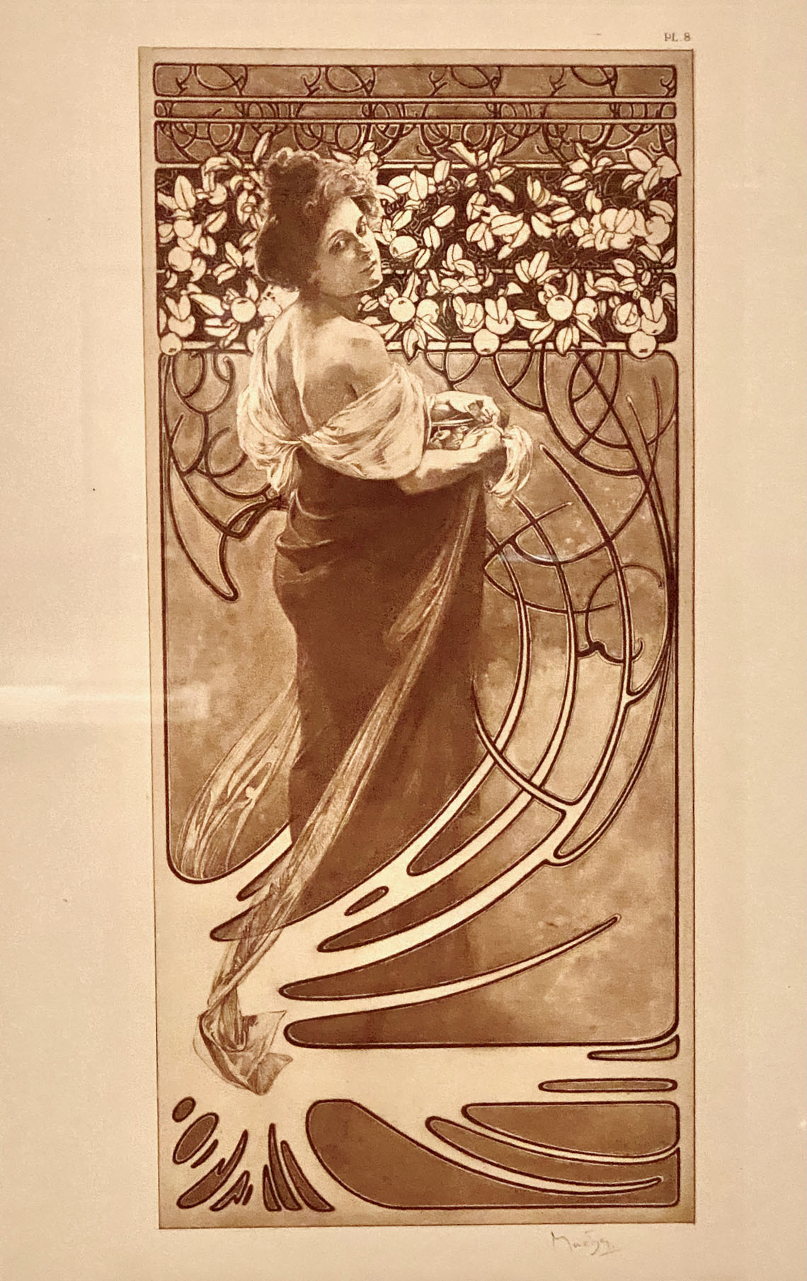 Close-up of Mucha’s life-size 1899 poster of Sarah Bernhardt starring in Hamlet, with Celtic motifs. Courtesy: Mucha Foundation.