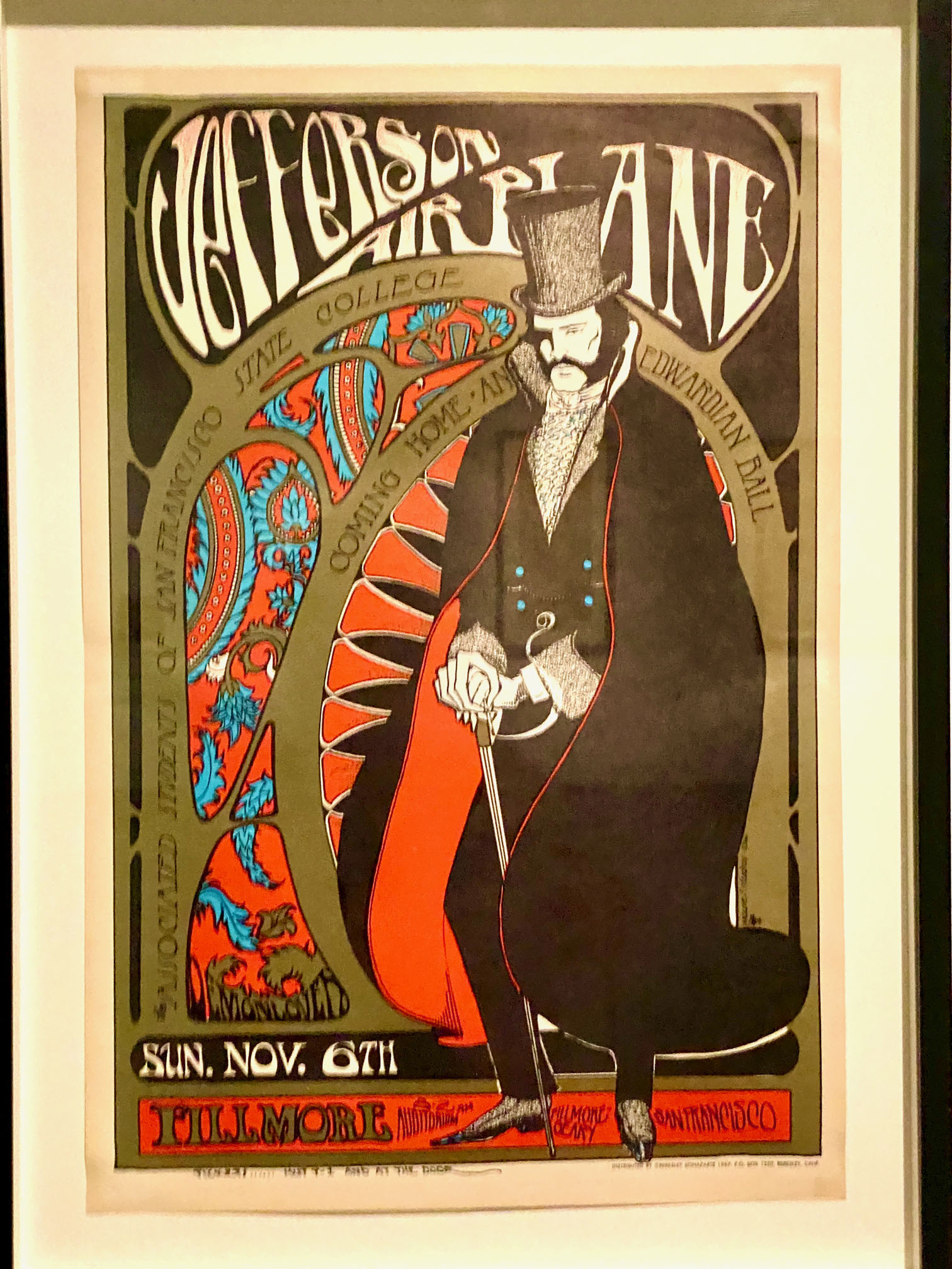 1966 tour poster for Jefferson Airplane at the Fillmore Auditorium by Stanley Mouse and Alton Kelley.