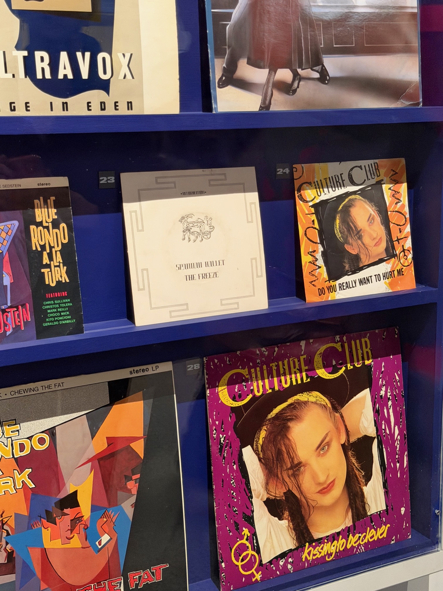 Several visitors shepherded their now-adult kids through the exhibit, reliving those days and explaining how it felt to be witnessing pop-culture history-in-the making. You see walls of record albums from the era, a series of MTV video clips, and first editions of i-D magazine that quickly morphed from a punk-music publication to a chronicle of Blitz Kid fashion and street style.