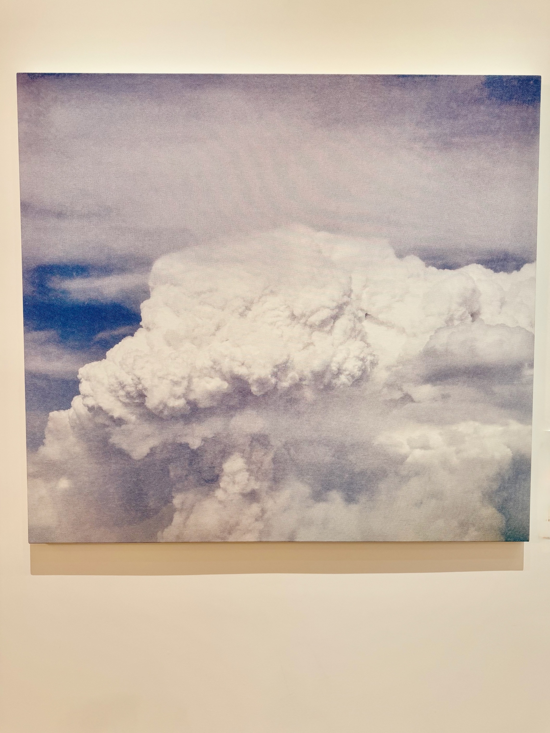 Considering the string of recent devastating wildfires that have plagued New Mexico in recent years, the artwork in the exhibition representing the element of fire is truly resonant. Kevin Naranjo made a tiny ceramic jar into which he carved his recollection of the wildly destructive 2011 Las Conchas Fire. Michael Namingha’s spectacular digital image is not just a pretty view of the sky. It’s the image of a cloud that only appears above an extremely intense heat source – exactly what he photographed during the 2022 Hermit’s Peak Fire or that New Mexicans witnessed in the Trinity blast.