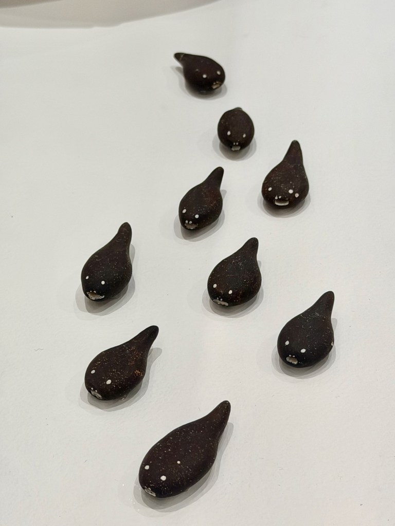 Keystone water species: 1958 ceramic Tadpole Figurines by Lucy Lewis (Acoma Pueblo); clay, crushed potshard temper, slip, and carbon paint.
