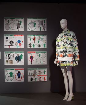 As soon as you enter the upstairs gallery, FIT features a wall of 2014 trend data from consultant WGSN right next to an “on trend” ensemble from Opening Ceremony.