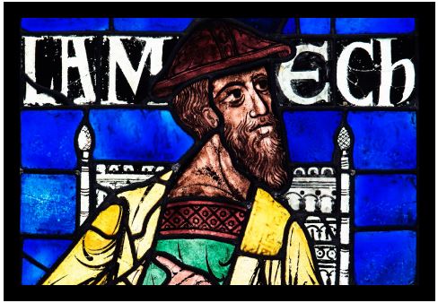 Phalech, one of Noah’s descendants, one of Canterbury’s original 86 stained-glass panels (1178-1780)