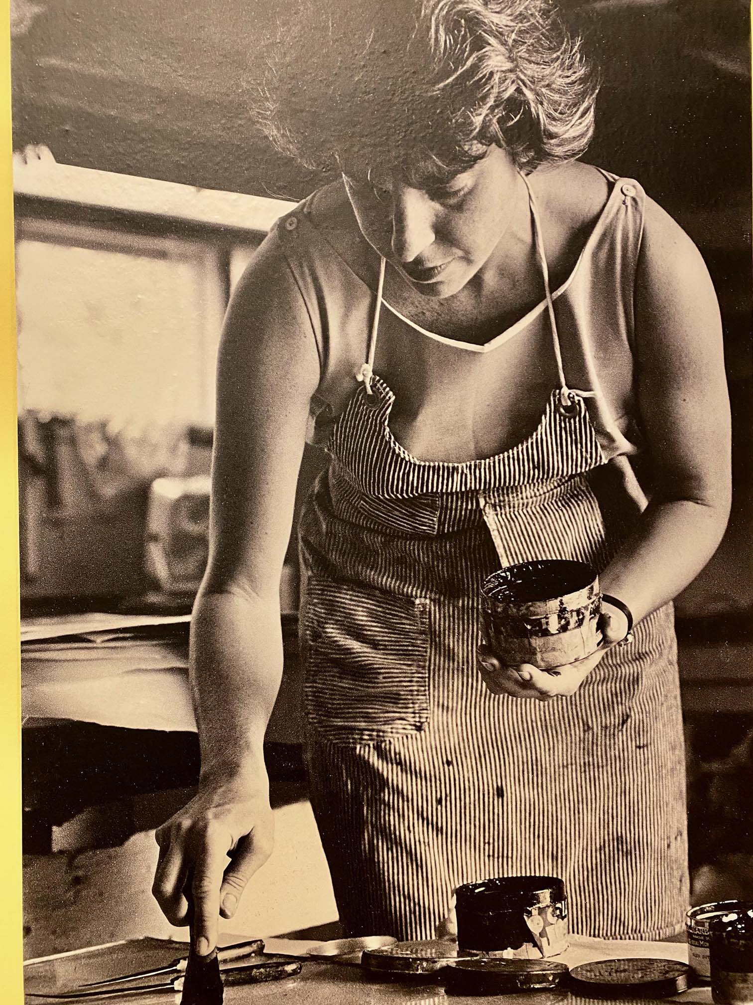 Hans Namuth’s 1964 photo of Frankenthaler working at ULAE in West Islip, NY. Courtesy: artist’s estate and University of Arizona’s Center for Creative Photography