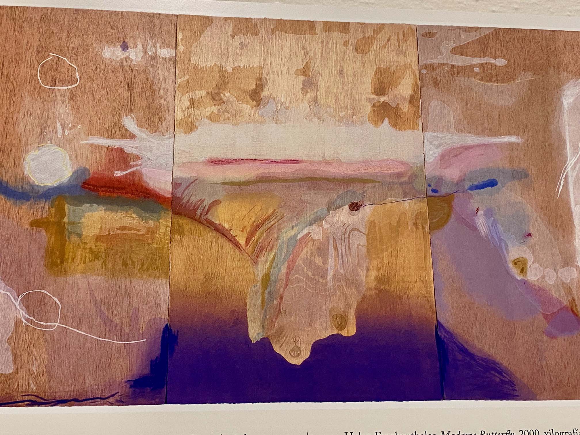 Photo of Frankenthaler’s 2000 woodcut Madame Butterfly made from 46 woodblocks; published by Tyler Graphics Ltd. Courtesy: Canberra’s National Gallery of Art.