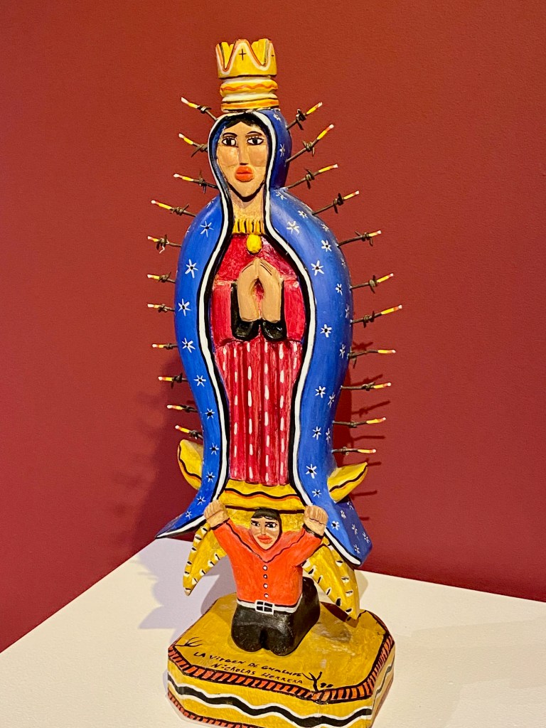 Herrera’s1998 hand-carved image of his favored protector La Virgen de Guadalupe. Courtesy: Evoke Contemporary