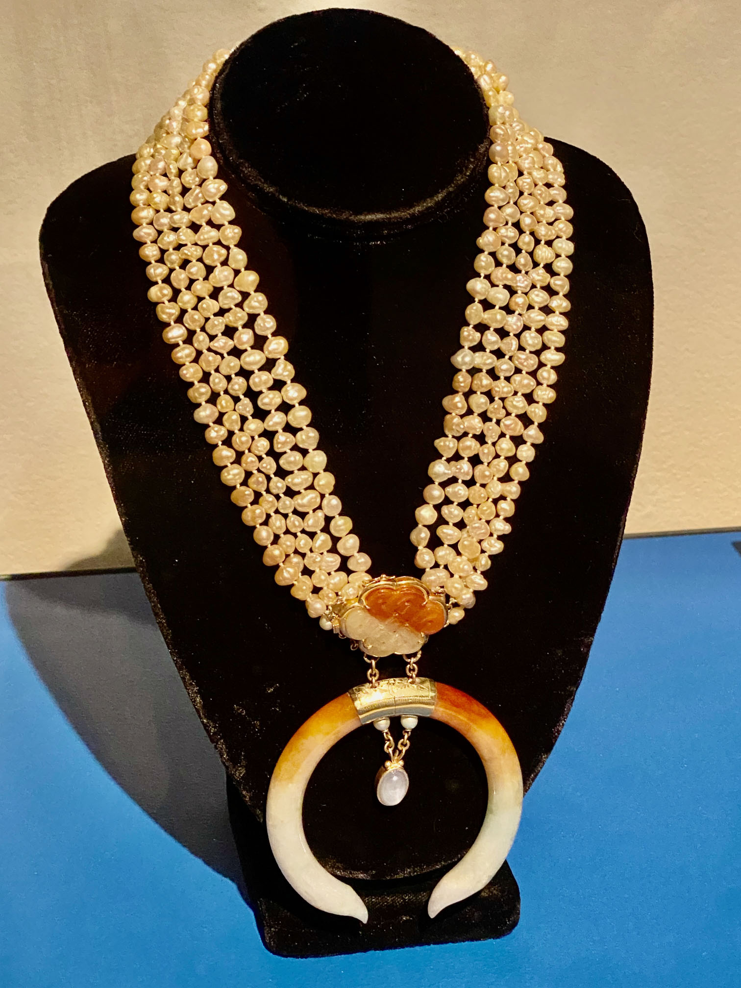 Kenneth Johnson’s (Muscogee/Seminole) 2011 necklace from recycled pearls, jade, gold, and silver..