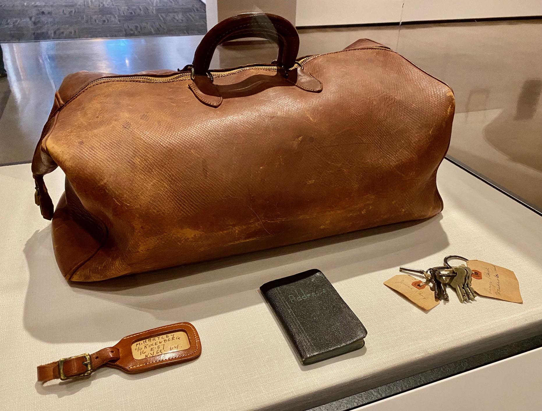 Ready to travel – Hartley’s leather valise, address book and luggage tags. Courtesy: the artist’s estate; Bates College Museum of Art.