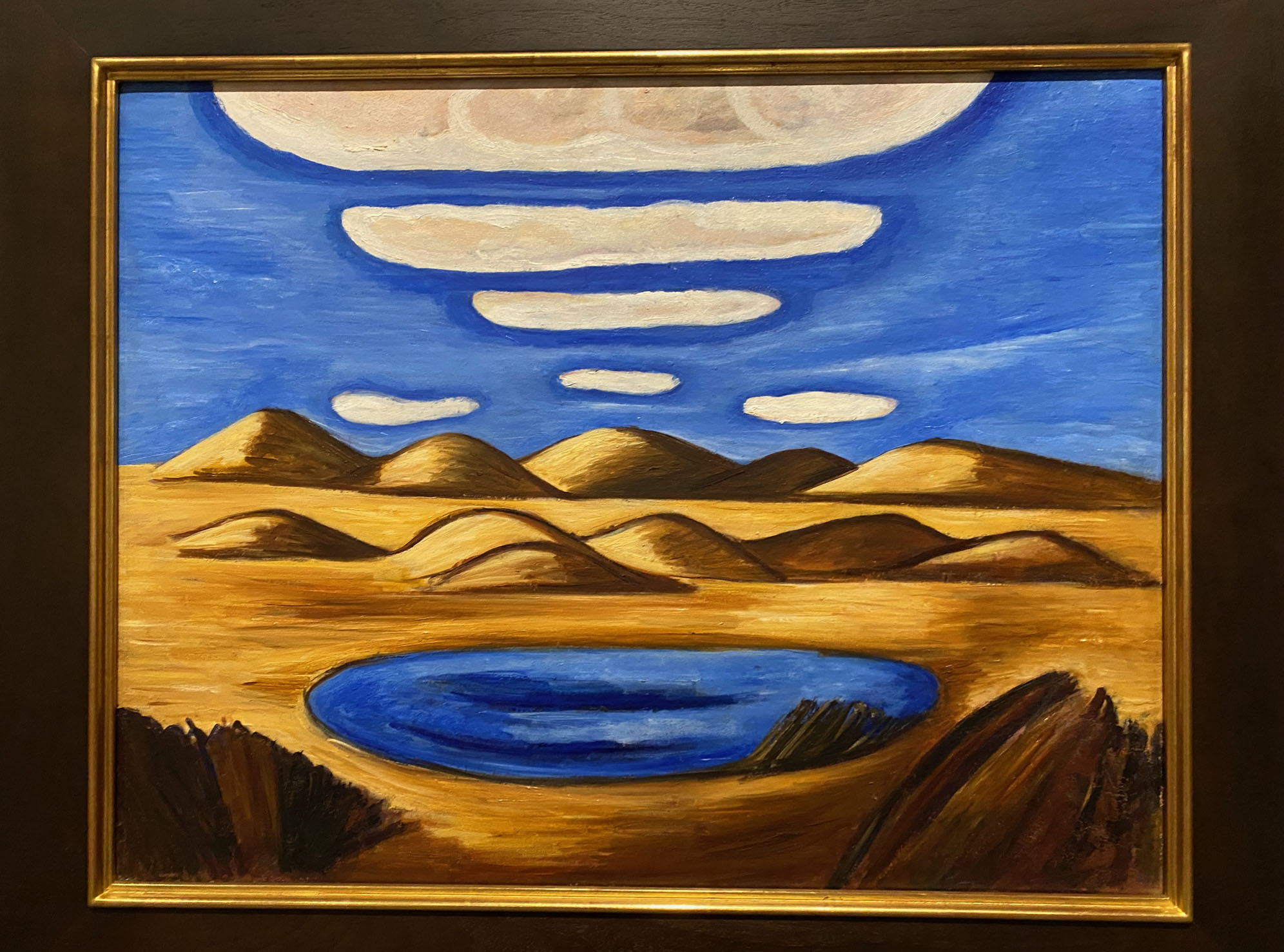 His niece, who preserved her uncle’s posessions and legacy after his death in 1943, took a train trip to New Mexico for the first time to see the landscapes that so inspired her uncle. Upon emerging from the train at the stop near Santa Fe, she looked up to take in the big, dramatic, cloud-filled sky. Thinking of all her uncle’s landscapes, she said, “Those clouds…I’d recognize them anywhere!”